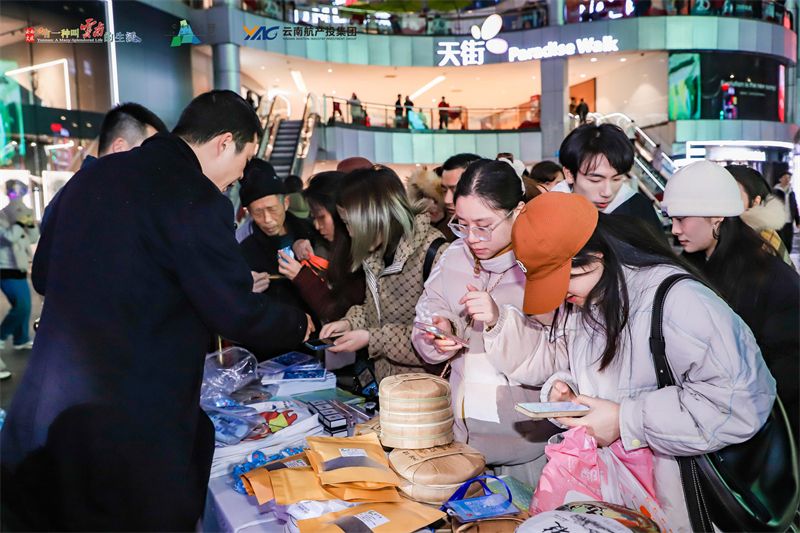 活动现场,以“有一种叫云南的生活”为主题搭建的路演区域和集市展示区,吸引了众多重庆市民及游客驻足观看。该区域提炼云南文旅标志性元素、航空元素融合进行设计,搭建具有云南文旅氛围的路演区域,展示云南航旅文创产品、普洱文旅企业特色产品,生动鲜活地展现了“有一种叫云南的生活”。