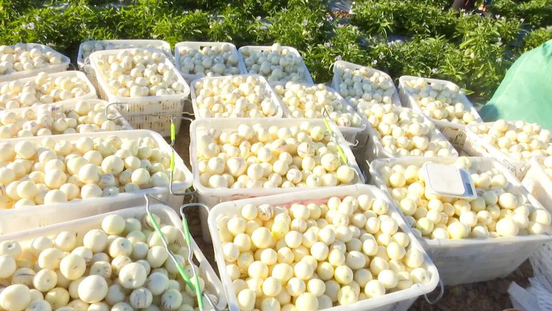 种植户李燕和工人们正穿梭在地里采摘成熟的果实,只见一行行植株整齐排列、一个个果实挂满枝头,让人精神为之一振。看着这一筐筐“白花花的银子”,李燕心里的喜悦不言而喻。