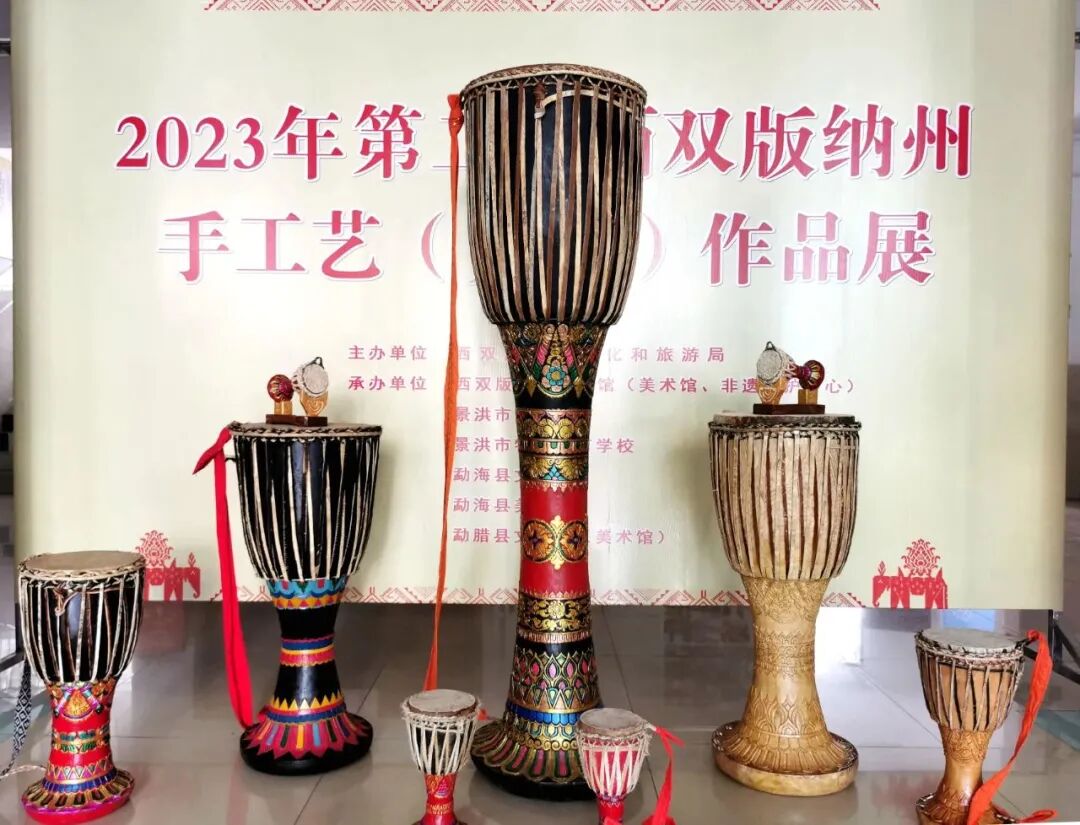为进一步推动传统工艺保护传承与创新发展,增进非遗“守艺人”的交流互动,西双版纳州文化和旅游局主办的“第二届西双版纳州手工艺(文创)作品展”在州文化馆持续展出。展览现场,制作精美的象脚鼓,造型丰富的傣陶制品,由竹编制作而成的竹篮、玩具、水杯套等生活用具,通过傣纸、傣锦制成的文创产品,让市民游客感受到当地多元的非遗魅力和劳动人民智慧的结晶。