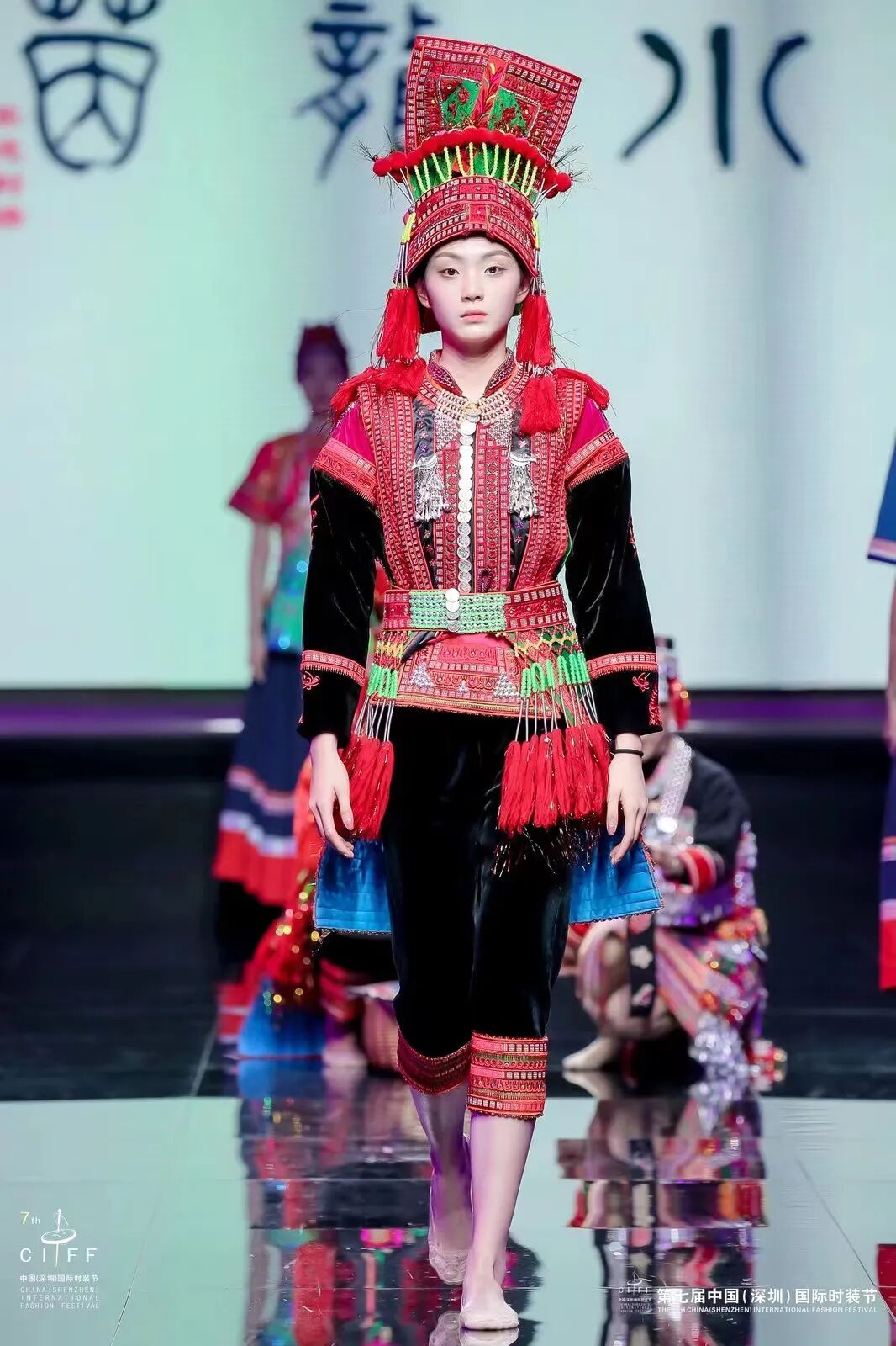 贵州苗族服饰以繁复的绣花和闪亮的银饰为特色,苗族服饰多以鲜艳多彩而闻名,将红色、黄色、蓝色等鲜艳的颜色运用到服饰中,以突出服饰的视觉效果。鲜艳多彩的服饰不仅体现了苗族人民的个人喜好,也反映了苗族的历史文化和宗教信仰。同时,苗族服饰也体现了苗族人民的乐观热情的性格,在民族色彩的园林中屹立不倒。