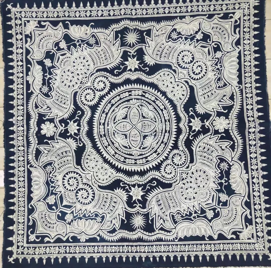 革家人是贵州的一个少数民族族群,主要分布于中国贵州省的黄平县、凯里市、施秉县、福泉市、翁安县及关岭县等。革家人的历史文化主要靠口口相传的形式得以传承,其服饰及图案中蕴藏着丰富的历史文化信息,革家蜡染除了其独特的艺术性及实用性以外,更是一部部无字的史书。革家的蜡染历史悠久,系以蜡为防染材料,以蓝靛为染色原料,经冷染、脱蜡而成。主要应用作为头饰、上衣、围腰、裙子等的主要组件,也用于背扇、襁褓、被面、枕套、竹篮盖布、桌布等等。
