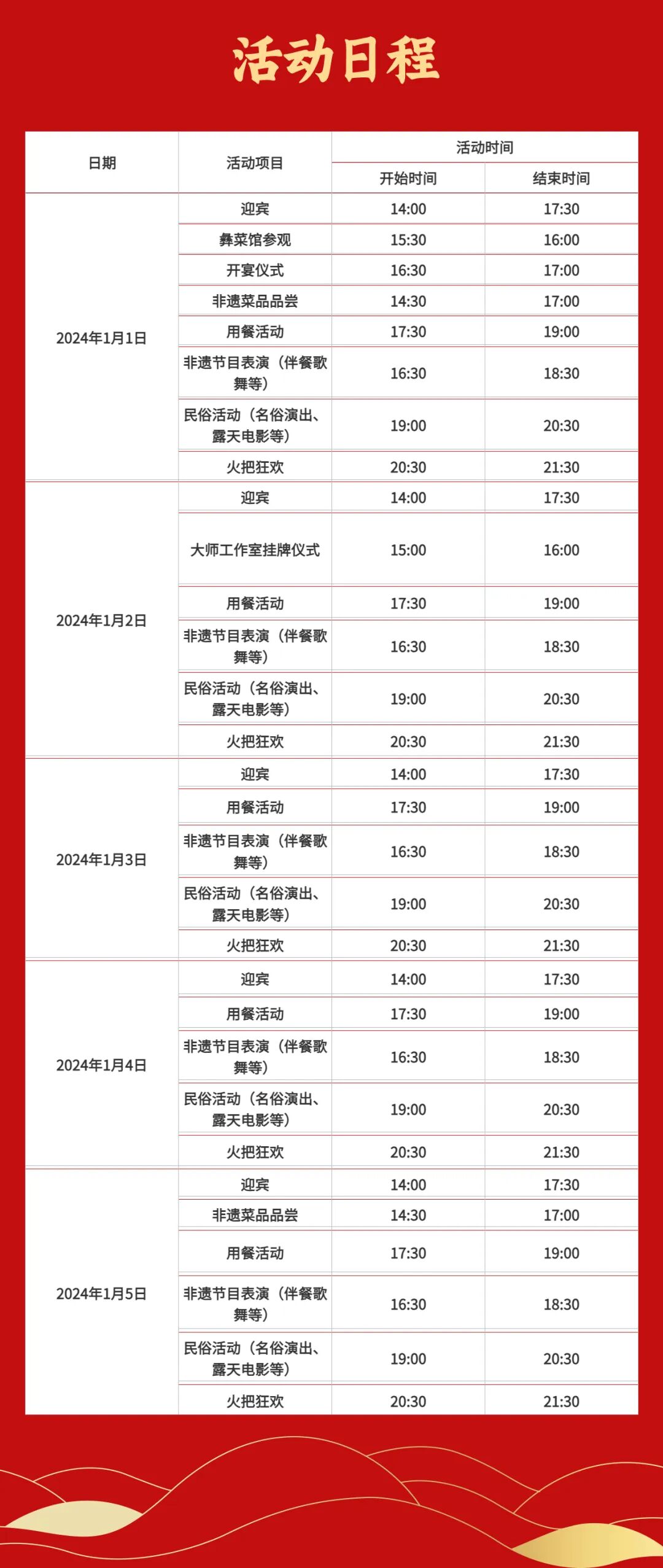 非遗彝菜馆的主要活动日程