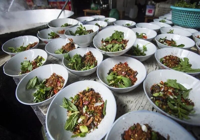 在楚雄州的彝家山寨,每逢节日集会或是赶山街,都有大量的羊汤锅上市。赶街的、跳脚的人走累了、跳累了、唱累了,就在食摊旁的松毛地上一坐,叫上一碗羊肉汤锅,撒上一大把糊辣椒,唇齿留香,食之难忘,实为不容错过的地道楚雄美食!
