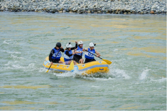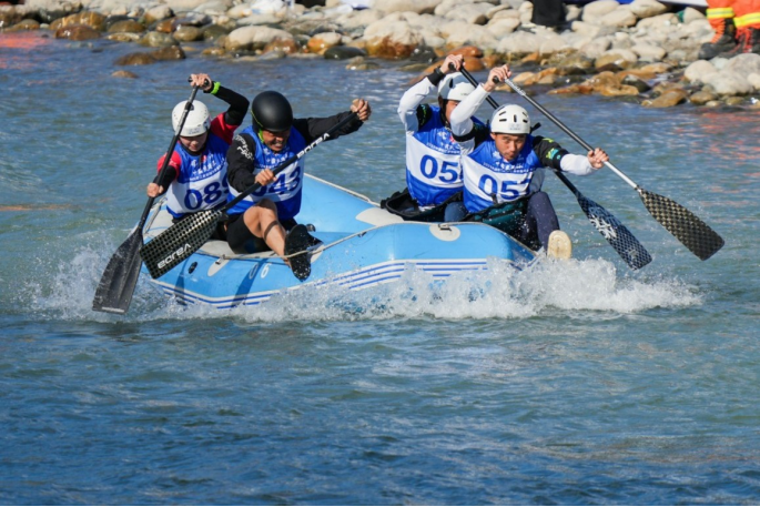 12月30日下午,“中国交建杯”2023中国怒江皮划艇野水公开赛4人橡皮艇短距离赛开赛。