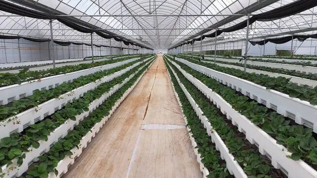 阳光永仁空中草莓采摘园负责人杨桂平说:“这个高架草莓无土栽培模式充分利用物理防治措施,有效降低了病虫害,提升了果品品质,同时有效利用了空间,减少了人工成本。”