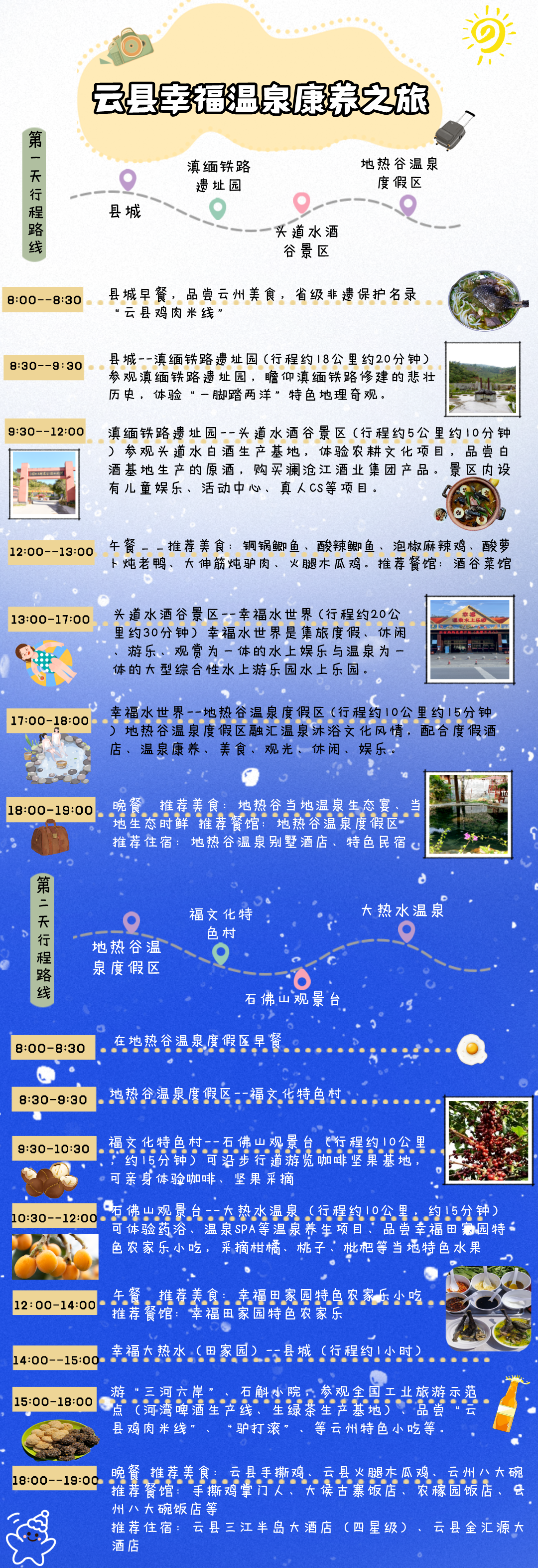 元旦游临沧 云县幸福温泉康养之旅等你来 2023-12-31 18:22 0 第一天 云县 滇缅铁路遗址 头道水酒谷景区 地热谷温泉度假村 第二天 福文化特色村 石佛山观景台 大热水温泉 酒店推荐:云县三江半岛大酒店 请大家注意出行安全 祝大家元旦快乐! 来源 恒春临沧 责编 杨金敏 审核 华芳