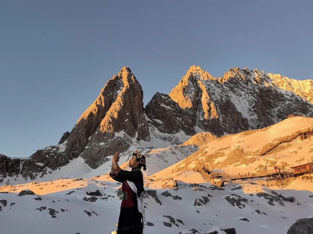 为方便游客们观看日照金山的魅力景观,玉龙雪山景区还为游客开通相应的冰川公园索道时段,让游客们不错过晨曦的美妙。