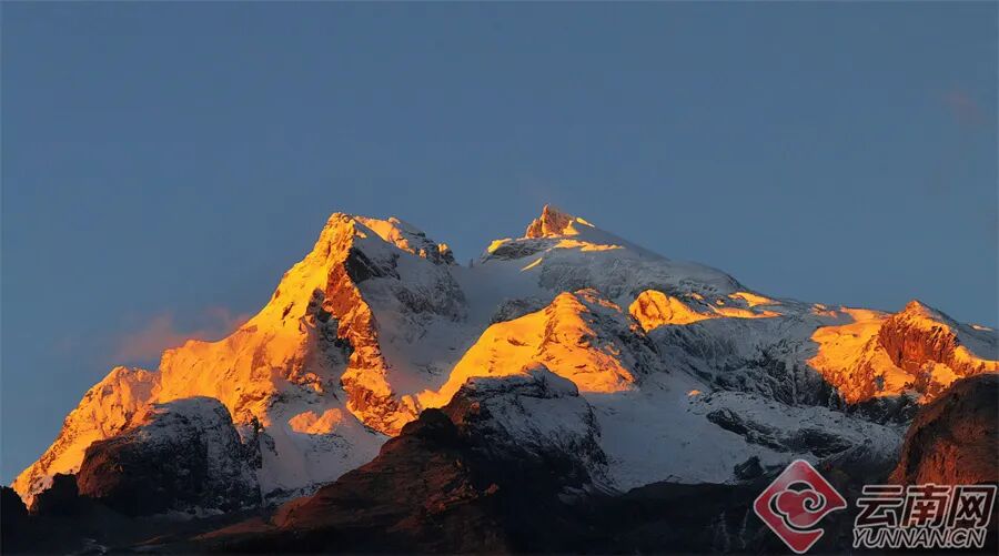 2024年新年第一天,哈巴雪山日照金山。云南网记者 王毅 摄