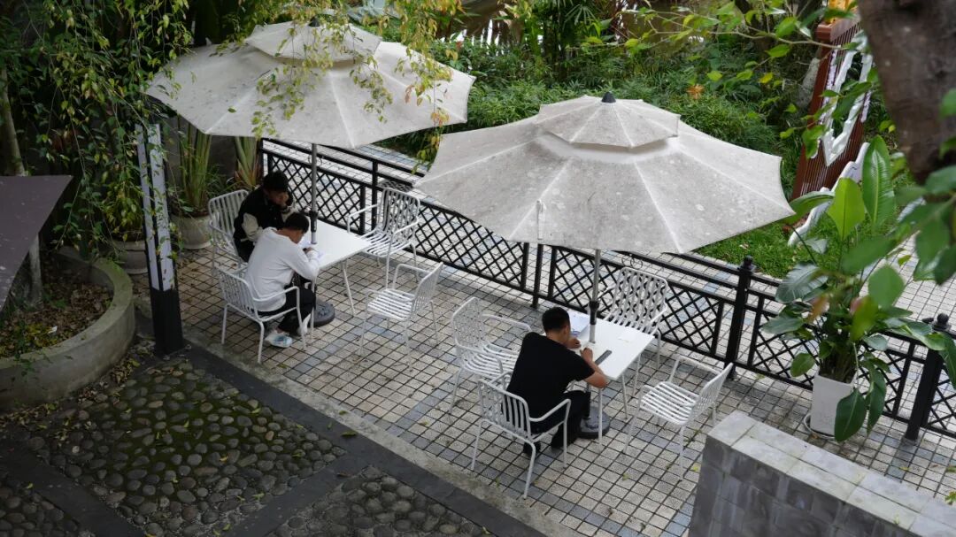 可以选择坐在室外