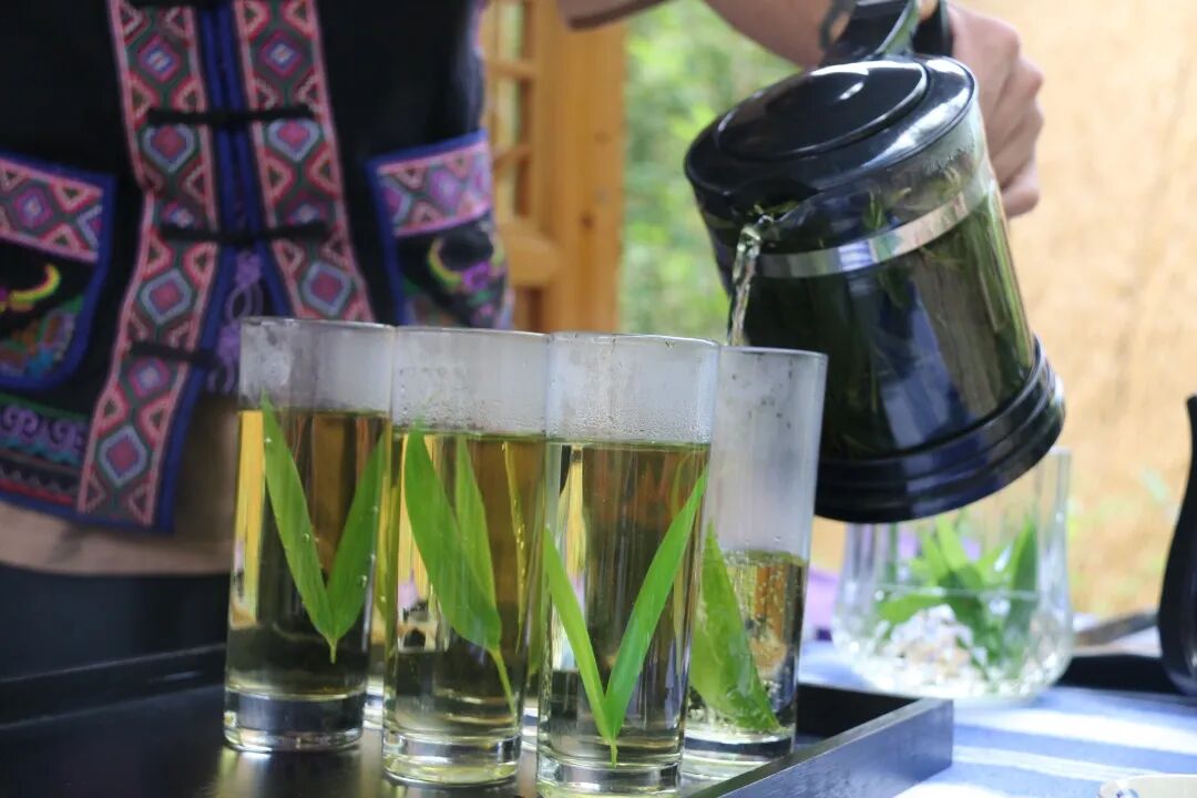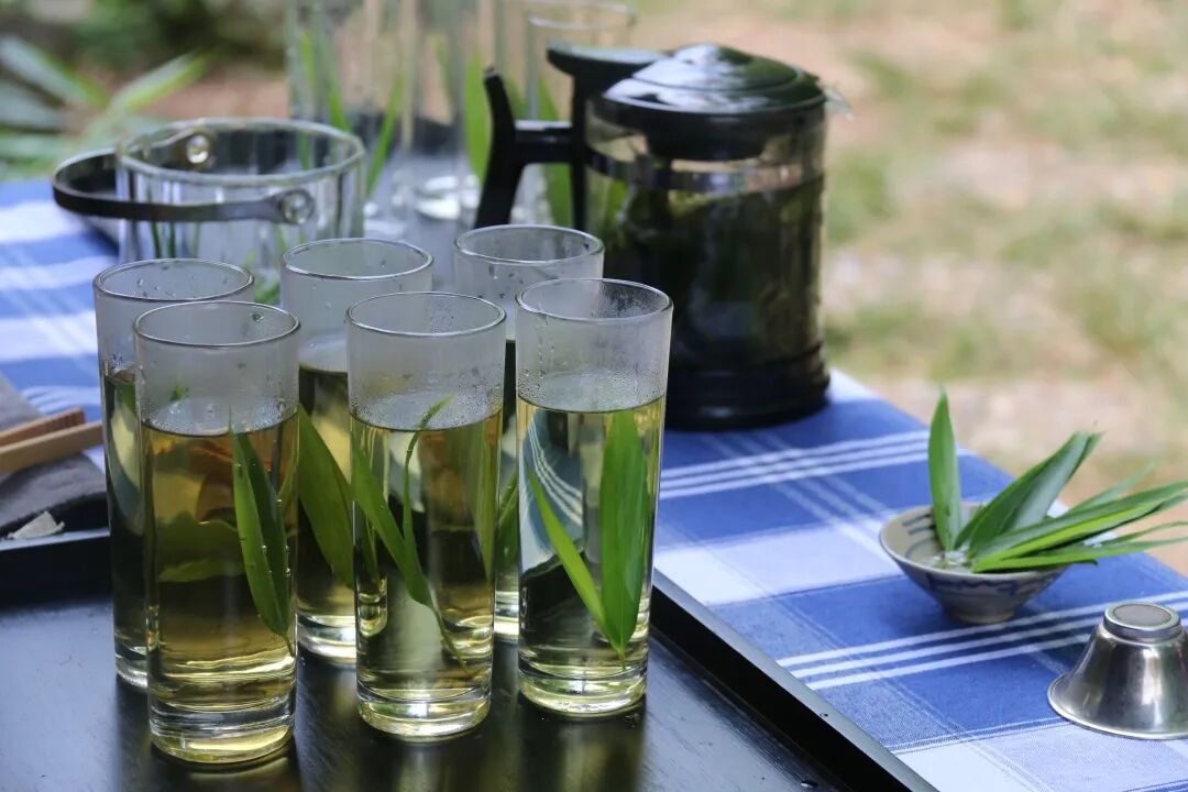 泡竹叶茶茶具应选择玻璃杯、瓷杯为佳,取用水温90-100℃的热水焖泡1~2分钟即可出汤,可反复冲泡三次,依旧留有竹叶的清香。