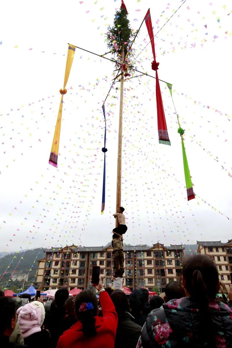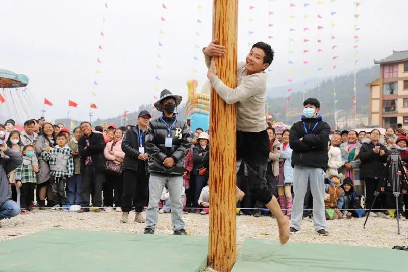 3.比赛规则:①第一名是以第一人爬上花杆,摸到铃铛为第一名;②第二、三、四名以爬上花杆,摸到铃铛用时长短进行排名;③比赛坚持自愿原则,比赛过程中无任何保护措施,参赛者在比赛过程中造成的一切后果自负。
