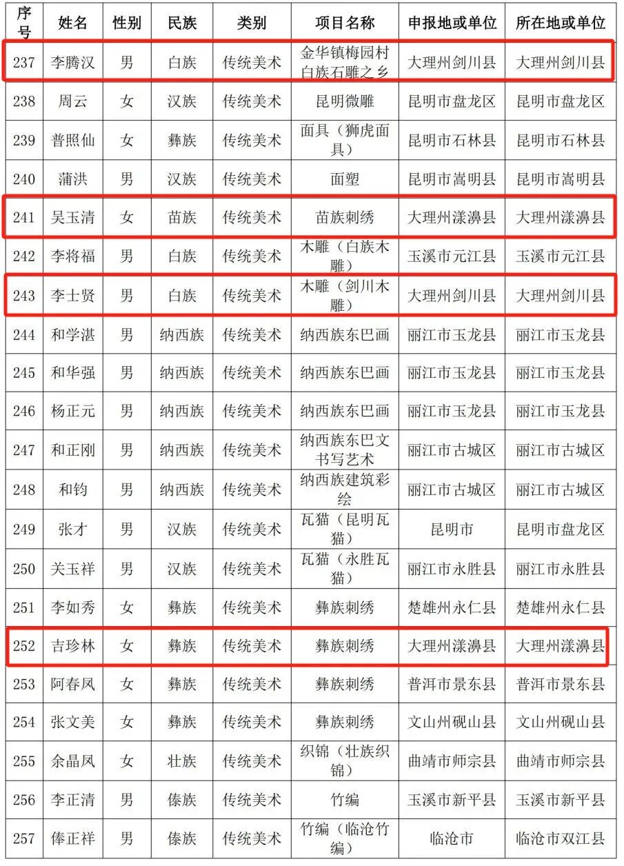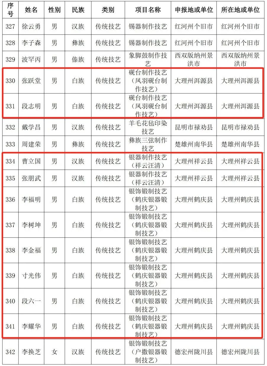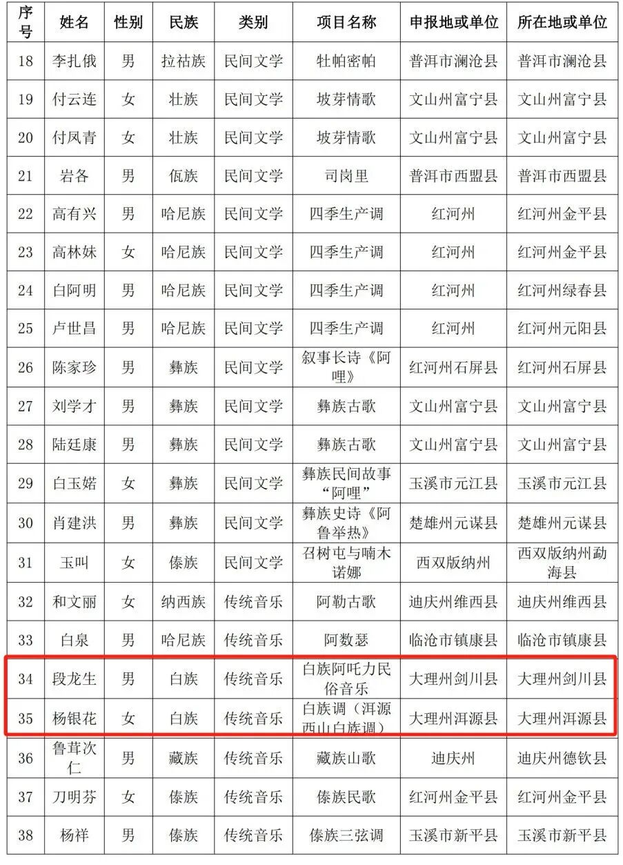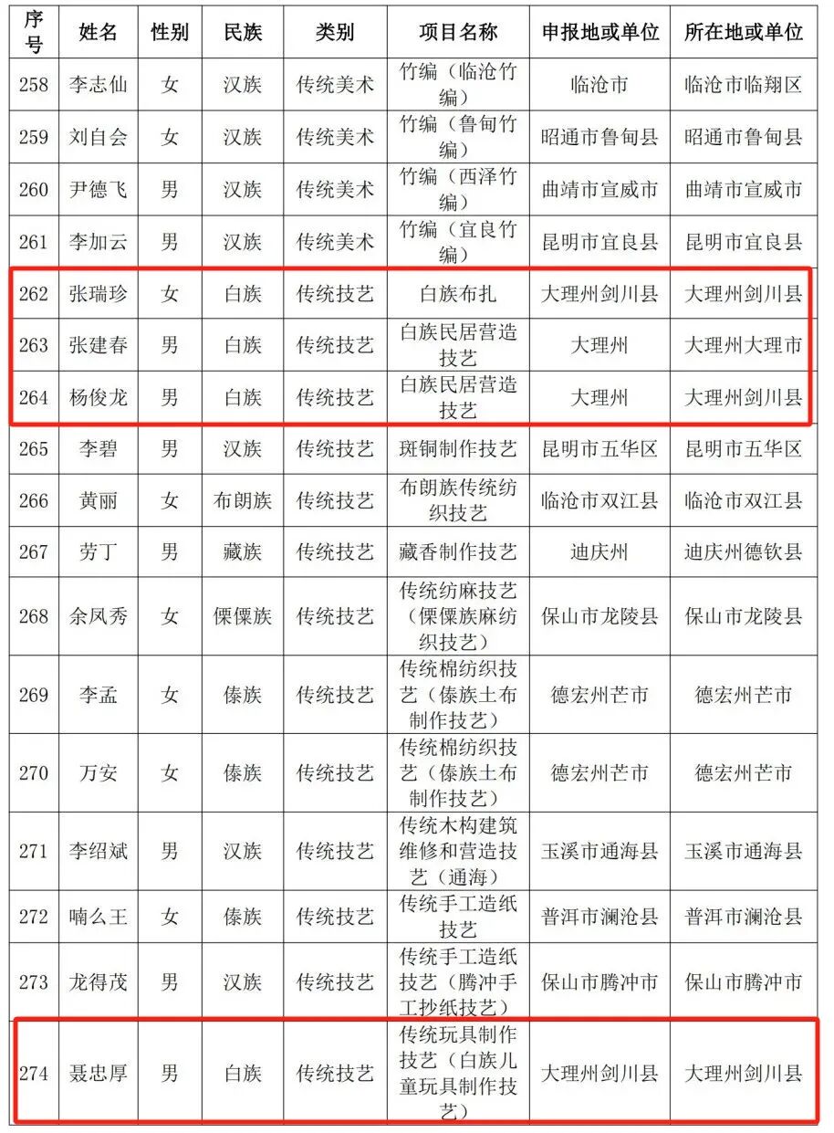 1月12日,云南省文化和旅游厅办公室发布了《关于第七批省级非物质文化遗产代表性项目代表性传承人推荐名单的公示》,提出第七批省级非物质文化遗产代表性项目代表性传承人推荐名单498名,其中,大理州77名传承人榜上有名。