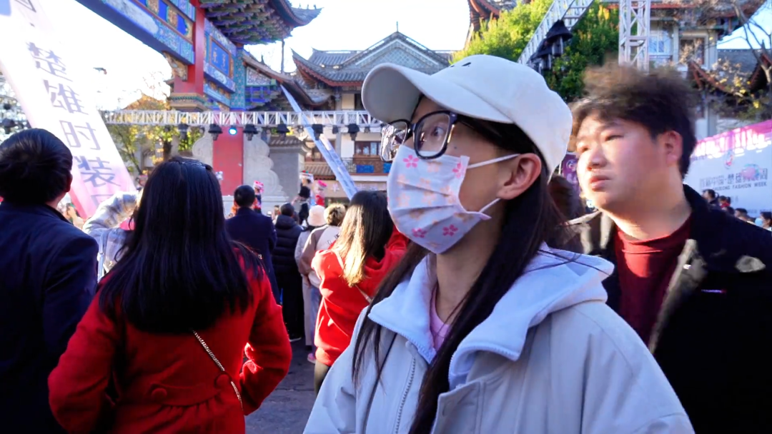 游客 杨玉琳:“我是腾冲来的,来楚雄跨年,刚好碰到楚雄首次时装周的秀场,人特别多、特别热闹,看到了很多精美的服饰,但是我最喜欢的是永仁县的那场走秀,我觉得他们的服装都非常精致好看,如果有机会,真想买一套。”