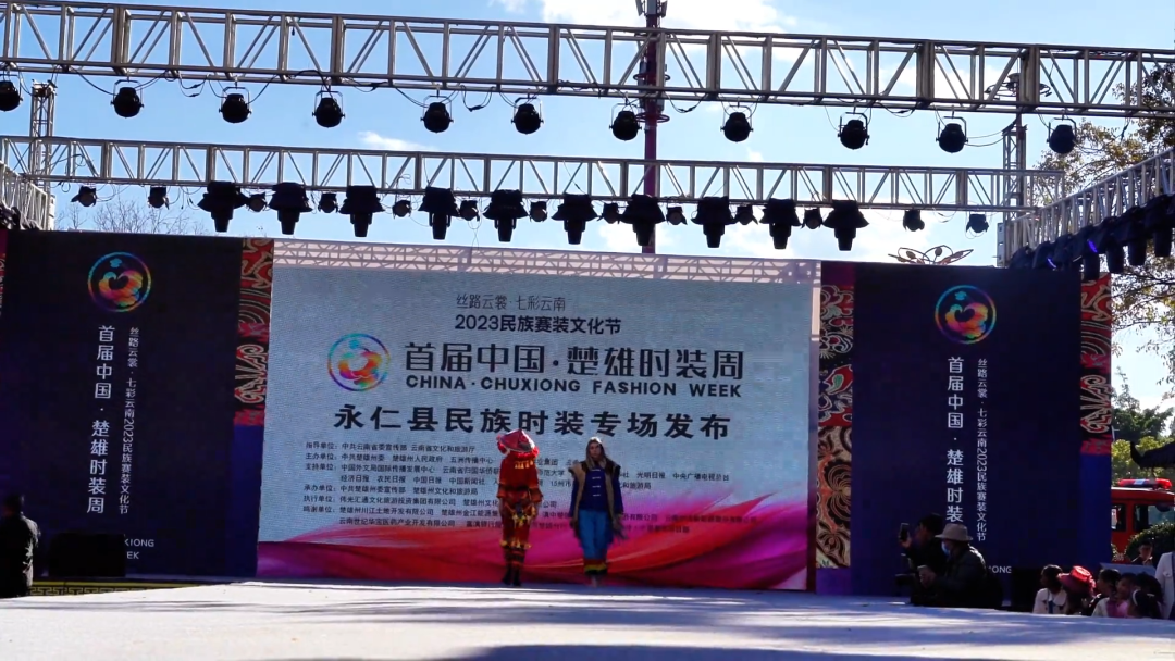 2023年12月31日,丝路云裳·七彩云南2023民族赛装文化节——首届中国·楚雄时装周,永仁县民族时装专场发布在彝人古镇主会场开秀。