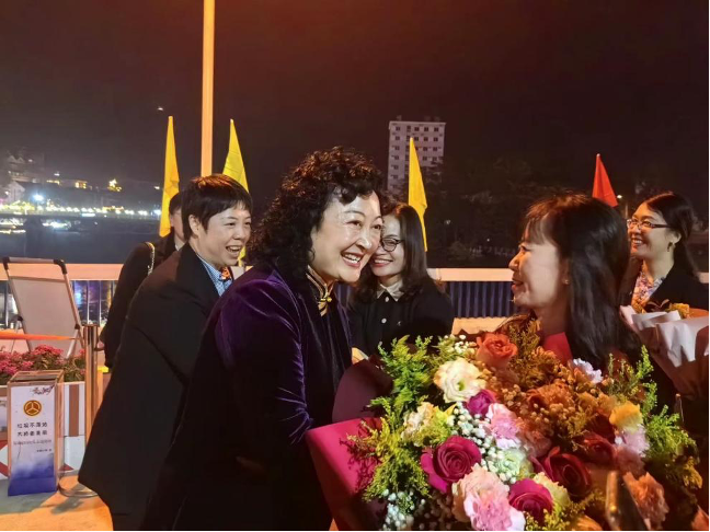 歌曲《真情共飞越》由音乐专业教师余定兴与越南著名歌手秋琼共同演绎。余定兴的美声唱法大气磅礴,既有力量又不失细腻,秋琼用纯净而深情的声音,相互呼应,共同营造出热烈、温暖而真挚的氛围。他们的深情演唱,共同传递了对友谊、和平与爱的美好祝福。“真情共飞越,命运相依偎,人文相亲梦相随,明天会更美”,描画了中越双方同心追梦、共创未来的美好愿望。