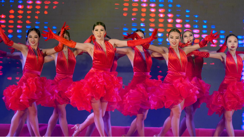 拉丁舞《燃》由18名师生共同呈现,他们将国际舞蹈艺术——拉丁舞的动感、欢快、奔放、热烈的魅力展示得淋漓尽致,他们的每一个动作、每一个转身、每一个跳跃都充满了力量和美感,红白色舞裙点燃了晚会现场的气氛,完美展现了经管舞蹈专业学生多元的舞蹈文化的技术与水平。