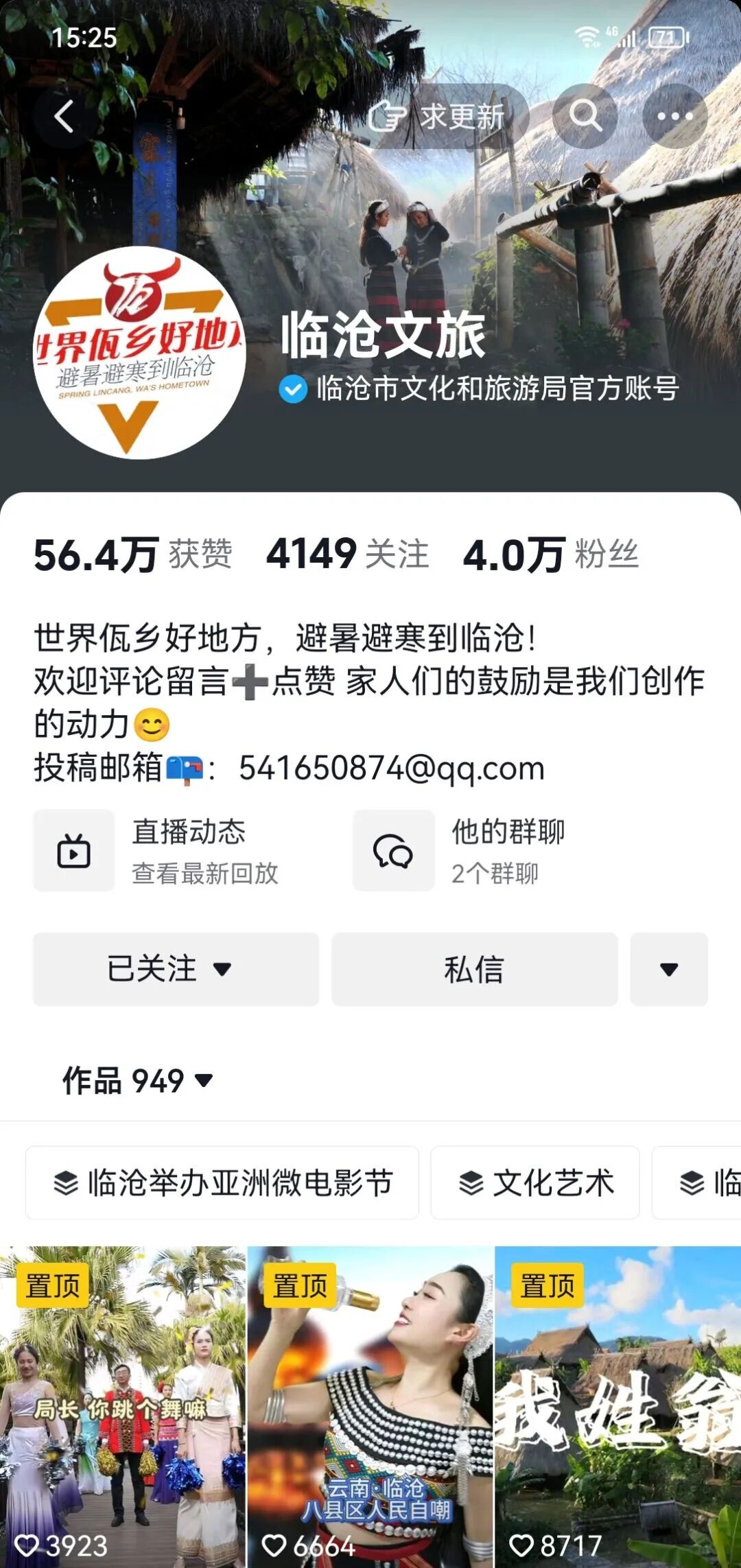 “临沧文旅”抖音号自开设以来,一直致力于展示临沧市独特的自然风光、丰富的历史文化和多元的旅游资源。通过生动有趣的抖音短视频,吸引了大量用户的关注和点赞,成为了全省文旅宣传的重要平台之一。