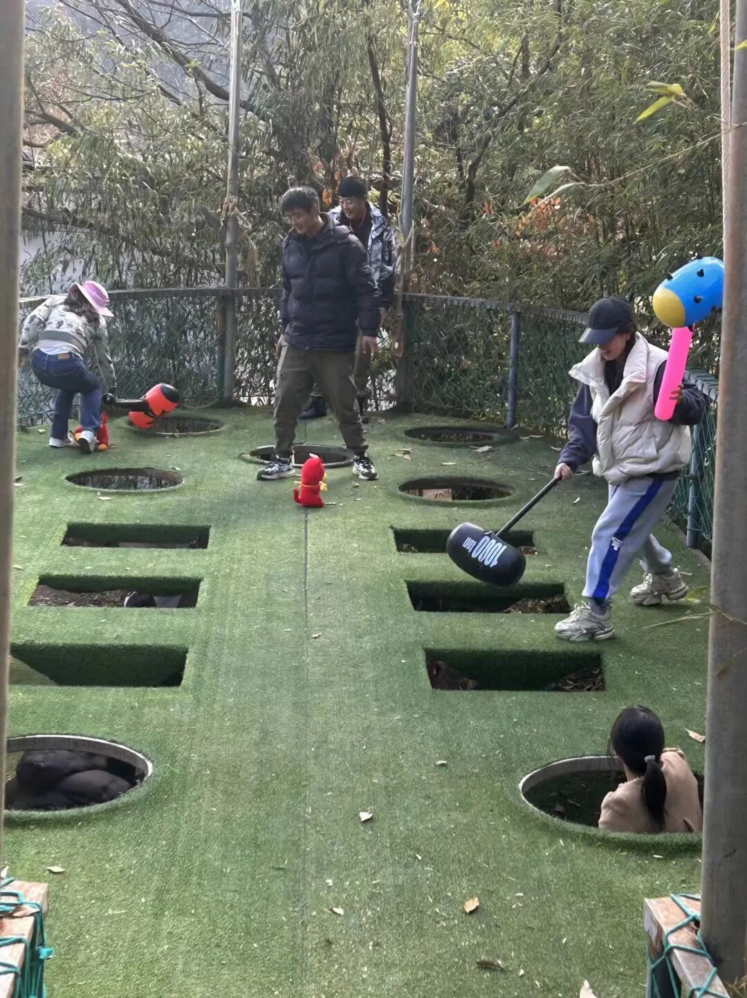 期末总结会后,大家分小组在教练的带领下开展了“穿越丛林”和“打地鼠”两个项目,有趣的游戏把大家的心连在了一起,在轻松愉快的氛围中教师们“洗”去了一学期的辛劳。
