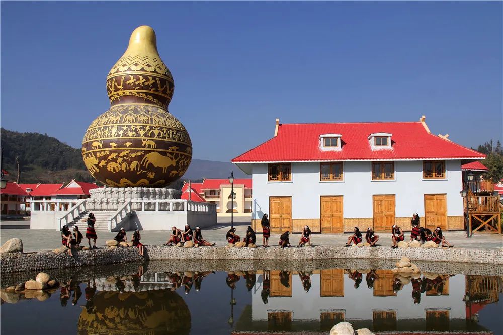 葫芦小镇位于沧源县城西南部 2Km 处,交通便捷、人文独特、风景秀丽,是集“吃、住、行、游、购、娱”为一体的佤文化活态旅游综合体。景区内可以品佤族美食、听月下情歌、纵情篝火狂欢。