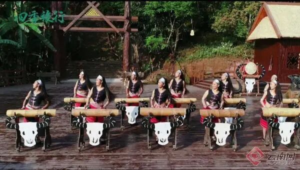 佤族姑娘表演木鼓舞 西盟县委宣传部 供图