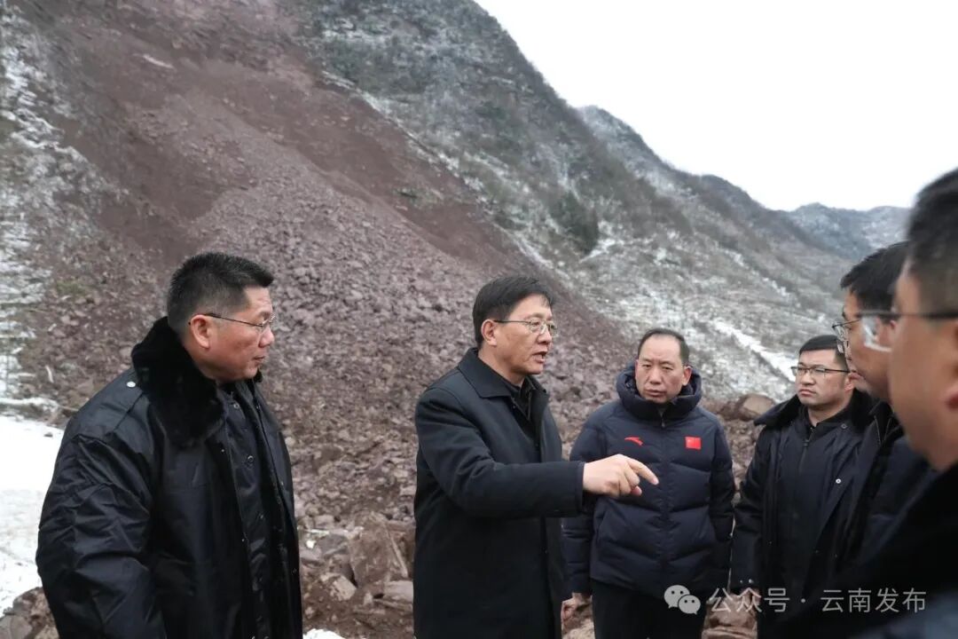 1月22日中午,省委副书记、省长王予波率省工作组冒着风雪赶到镇雄县塘房镇凉水村山体滑坡灾害现场,实地察看灾情,指挥现场救援,看望转移避险群众,并主持召开会议部署抢险救援工作。