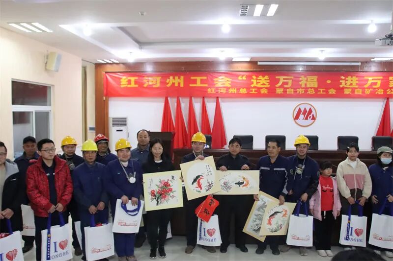 翰墨飘香迎新年,工会暖情送祝福。1月23日,红河州总工会、蒙自市总工会走进蒙自矿冶公司,开展“送万福、进万家”公益活动,邀请了6名书画家现场为大家“书幸福、绘吉祥”。