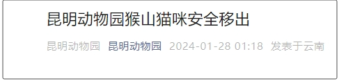 1月28日,据昆明动物园微信公众号消息,昆明动物园猴山猫咪安全移出,详情如下: