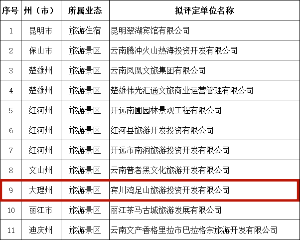 为进一步提高云南省文化和旅游行业从业人员职业道德水平和文明素质,全面提升文化和旅游单位文明服务水平,近期,云南省文化和旅游厅按程序组织完成第一批省级文明旅游示范单位评定工作,拟评定11家单位为云南省第一批省级文明旅游示范单位,其中,宾川鸡足山旅游投资开发有限公司上榜。