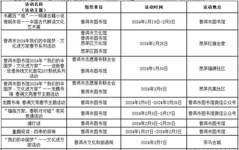冬游普洱、文博展览……