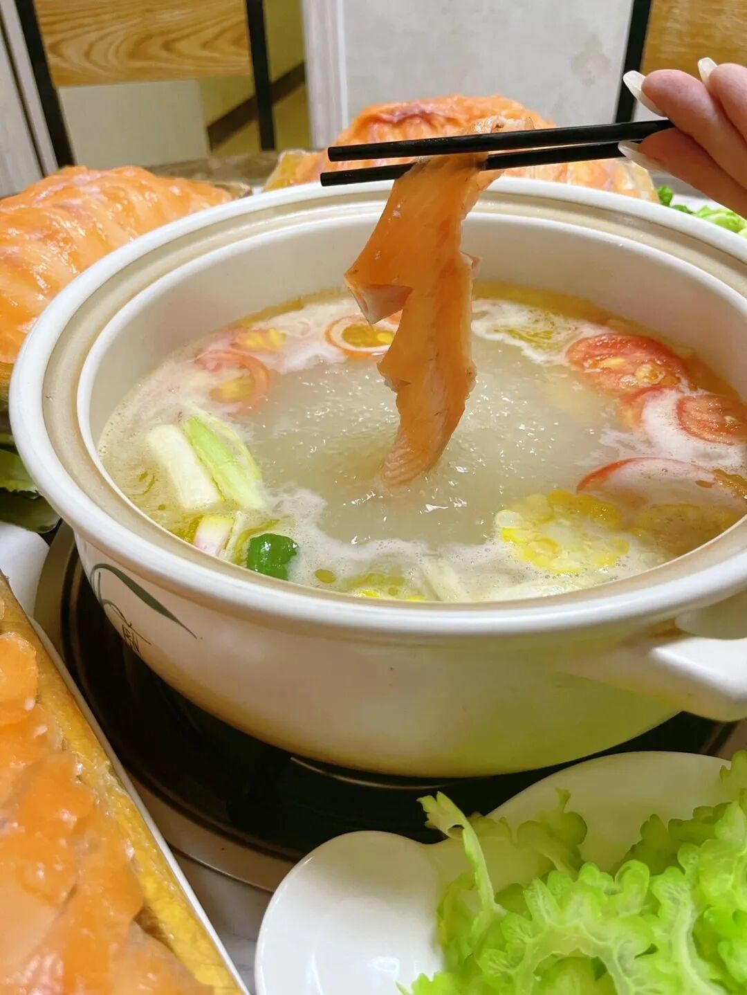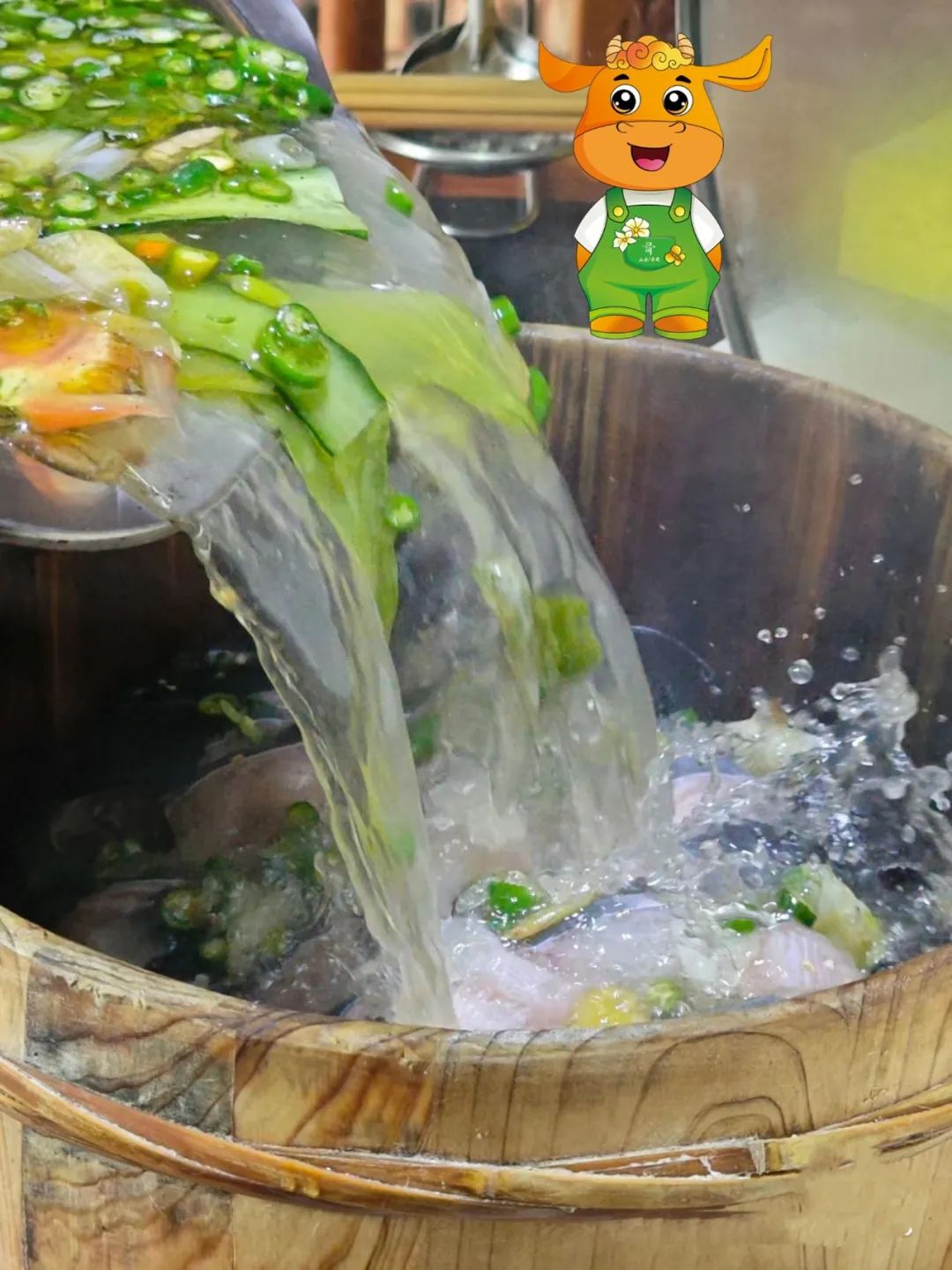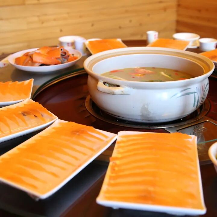 木桶为器,石头烹鱼,吃法独特:香杉木桶+400度黑石+营养高汤+新鲜活鱼。木桶焖熟的鱼肉鲜嫩、鱼汤鲜美,加上灵魂配料“藤椒”“辣椒”,吃上一口,齿颊生香!