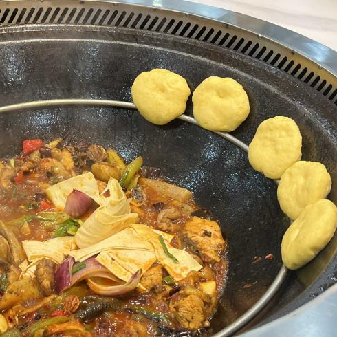 平凡无奇的食材,铁锅掌控火候,闷出汁又炒出味,现揉的玉米面贴在锅边,被汤汁浸泡后韧劲十足又入味,寒凉的冬日就这样吃出滋味。
