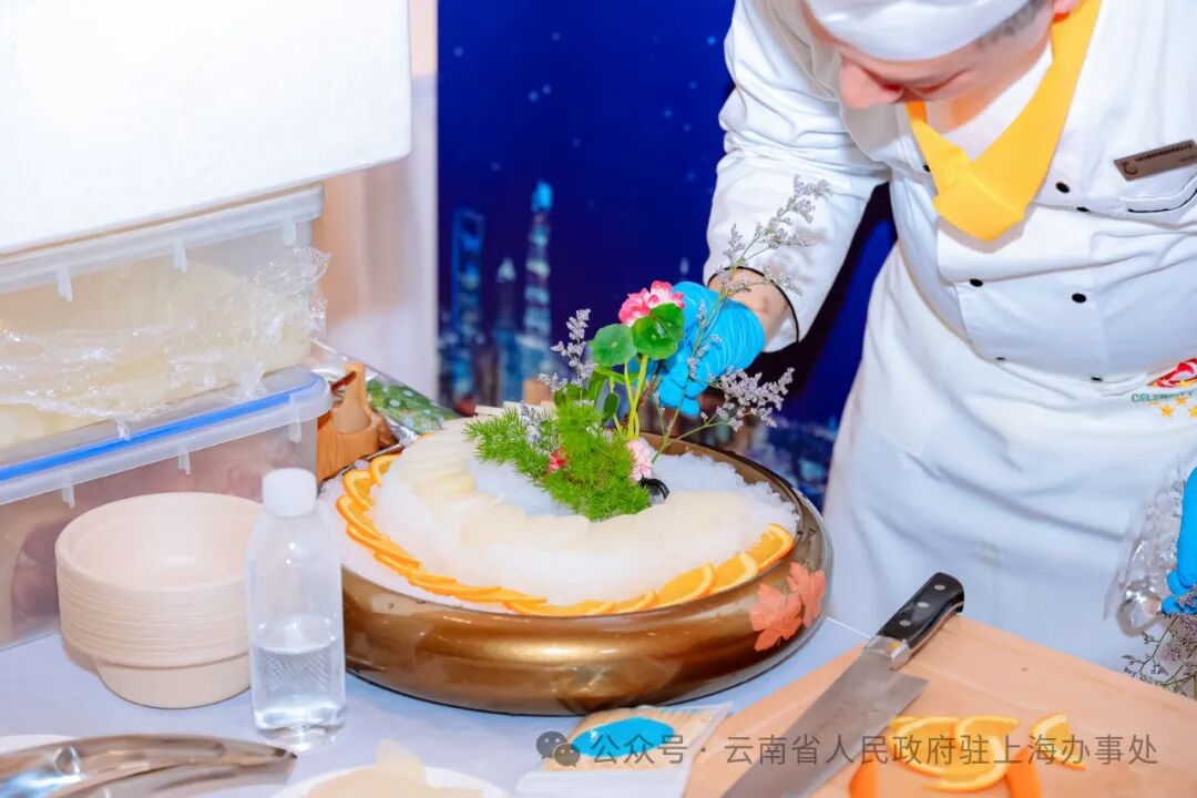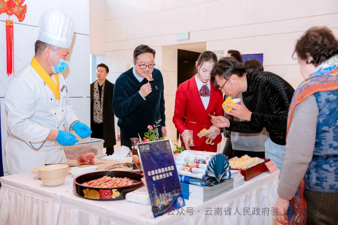 “彩云美食·沪上品味”滇菜入沪推介会由上海市人民政府合作交流办公室指导,云南省人民政府驻上海办事处、云南省商务厅共同主办,中国金融信息中心、上海市云南商会承办,中国饭店协会酒店星厨委、上海市消费帮扶工作平台、云南省餐饮与美食行业协会、云南省地理标志产业协会、云南省过桥米线协会、美团公司提供支持。上海市相关政府部门、商会协会、企业嘉宾等共计200余人出席本次推介会。