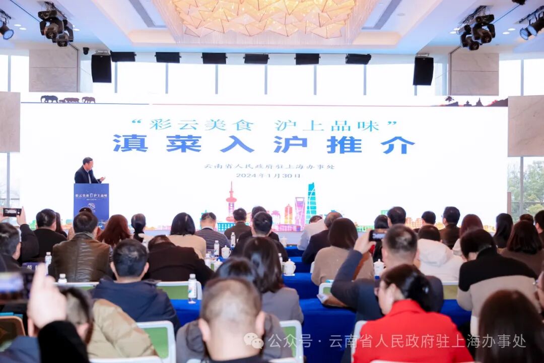 2024年1月30日,在新春佳节来临之际,“云品入沪·沪户开心” 2024年首场活动“彩云美食·沪上品味”滇菜入沪推介会在上海中国金融信息中心成功举办。本次推介会集中展示了近年来滇菜品牌发展的主要成果以及云南的生态食材,从行业协会、供应链、金融支持政策等多个角度分析了滇菜品牌未来在上海发展的前景。