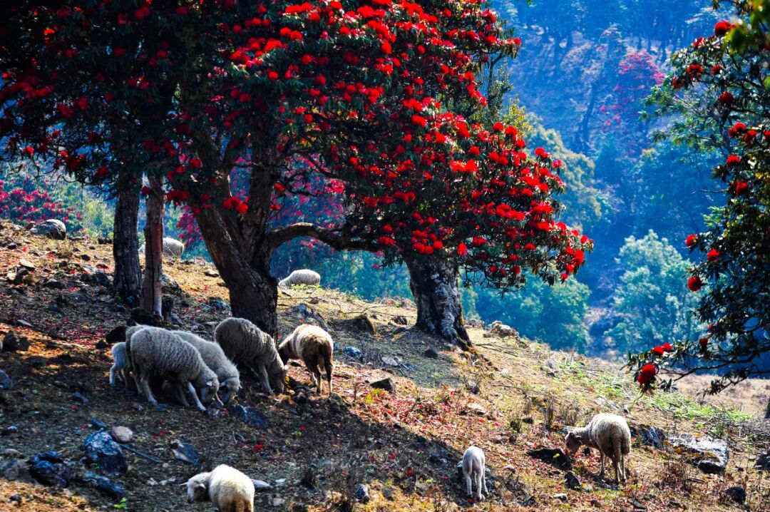每年2月中旬到5月中下旬,豚鹿坡上万亩连片杜鹃林似一团团彩云随心翻滚,一团团、一片片,在风中摇曳生姿,构成起伏跌宕、前呼后拥的花潮,如彩云霓裳、似锦缎霞披,在绿树环抱的大山间尽显妩媚妖娆,美得令人陶醉,令人震撼。