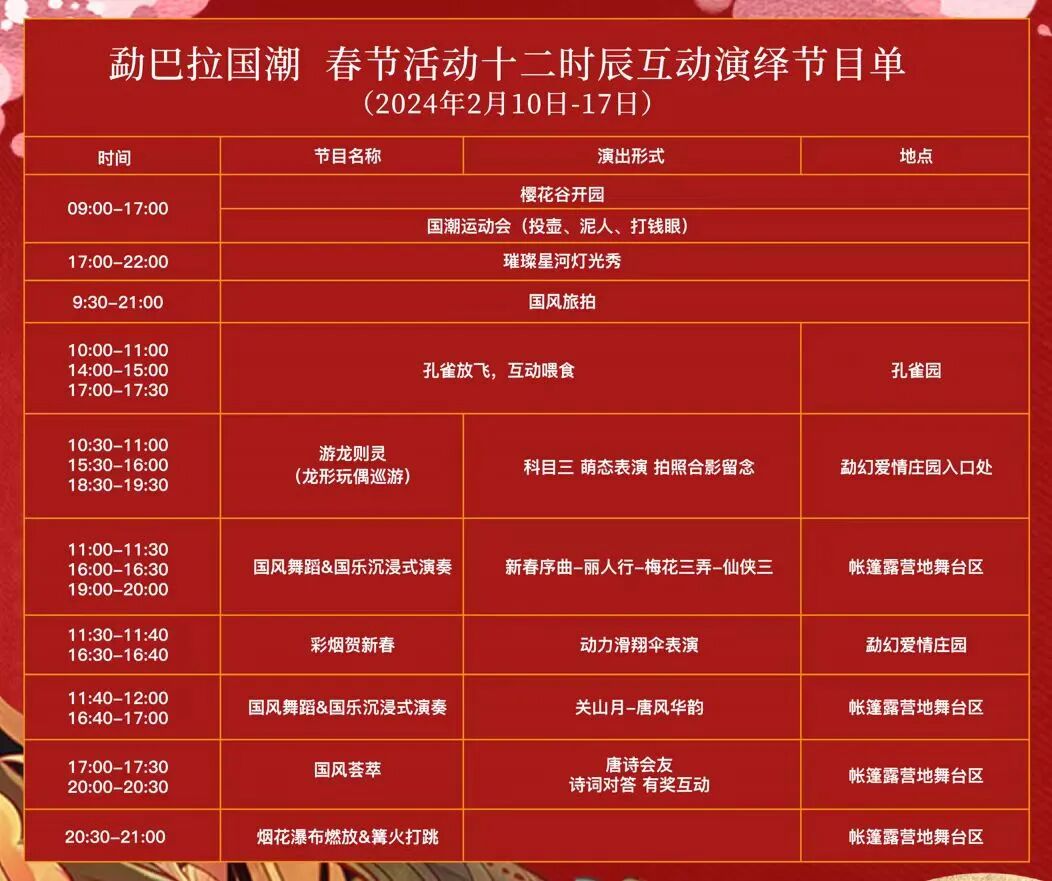 3.活动期间,景区将开展民族音乐会、写百福,接福气、拆盲盒,迎好运、画脸谱、学非遗等系列热带雨林文化旅游节景区互动活动,以开放、包容、接纳传承的态度玩转潮流,让传统文化与国潮完美碰撞。