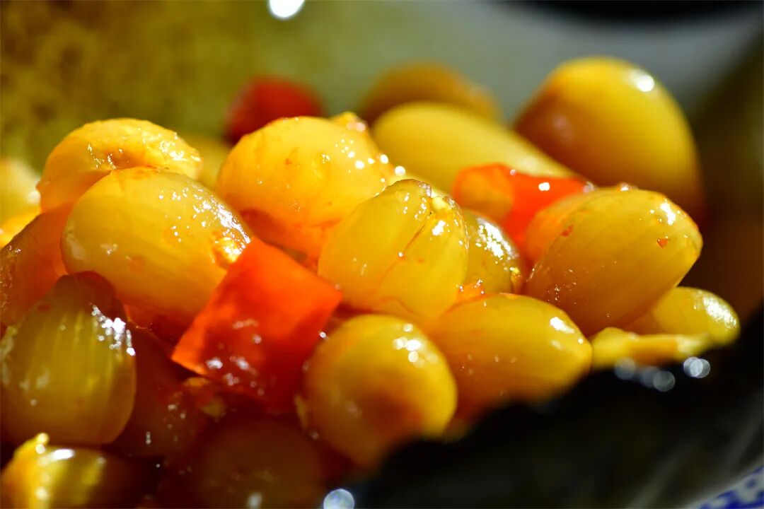 开远甜藠头,颗粒整齐,金黄发亮,香气浓郁,肥嫩脆糯,鲜甜而微带酸辣,是佐餐的佳品。民间还流传着“久食龙肝不知味,垂涎只为甜藠头”的诗句,以称赞其美味。2017年,开远甜藠头制作技艺入选云南省第四批非物质文化遗产名录。