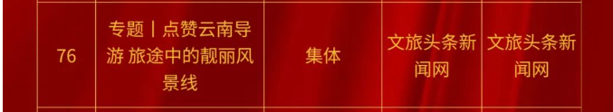 “点赞云南导游”专题报道,在云南省文化和旅游厅、云南省导游协会指导下,由文旅头条新闻网编辑制作,在云南省文化和旅游厅微信公众号持续推出,其内容着眼“云南导游”群体,讲述着旅途中温暖人心的一个个故事。工作在游客服务一线的云南导游,是当之无愧的旅途中的靓丽风景线,正是有了他们的身影,云南的风景才更加让人流连忘返。专题上线以来,受到业内外的广泛关注、获得好评无数,为不断提升云南文旅正面形象,助力守护云南旅游金字招牌作出了贡献。