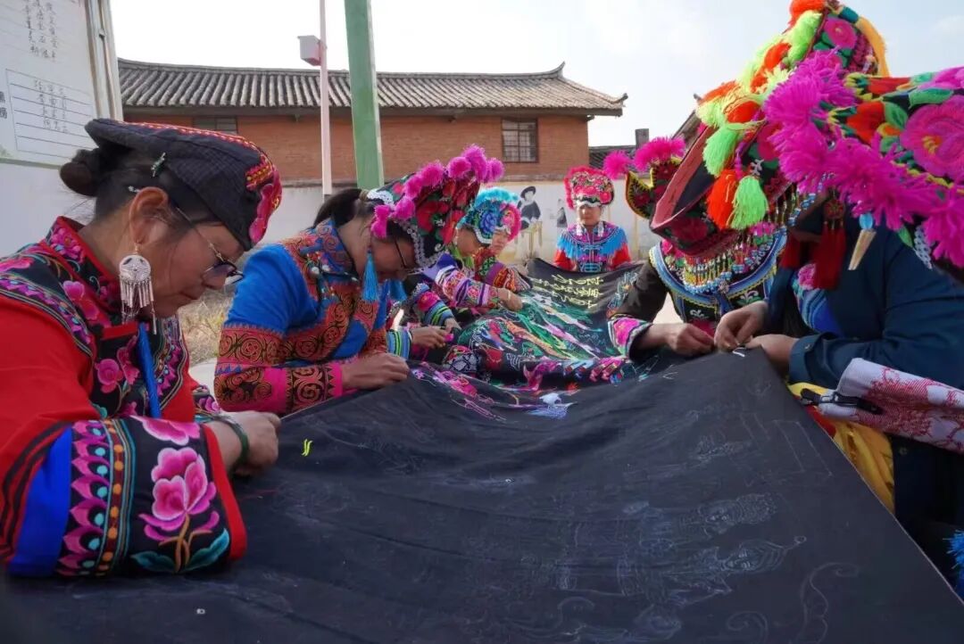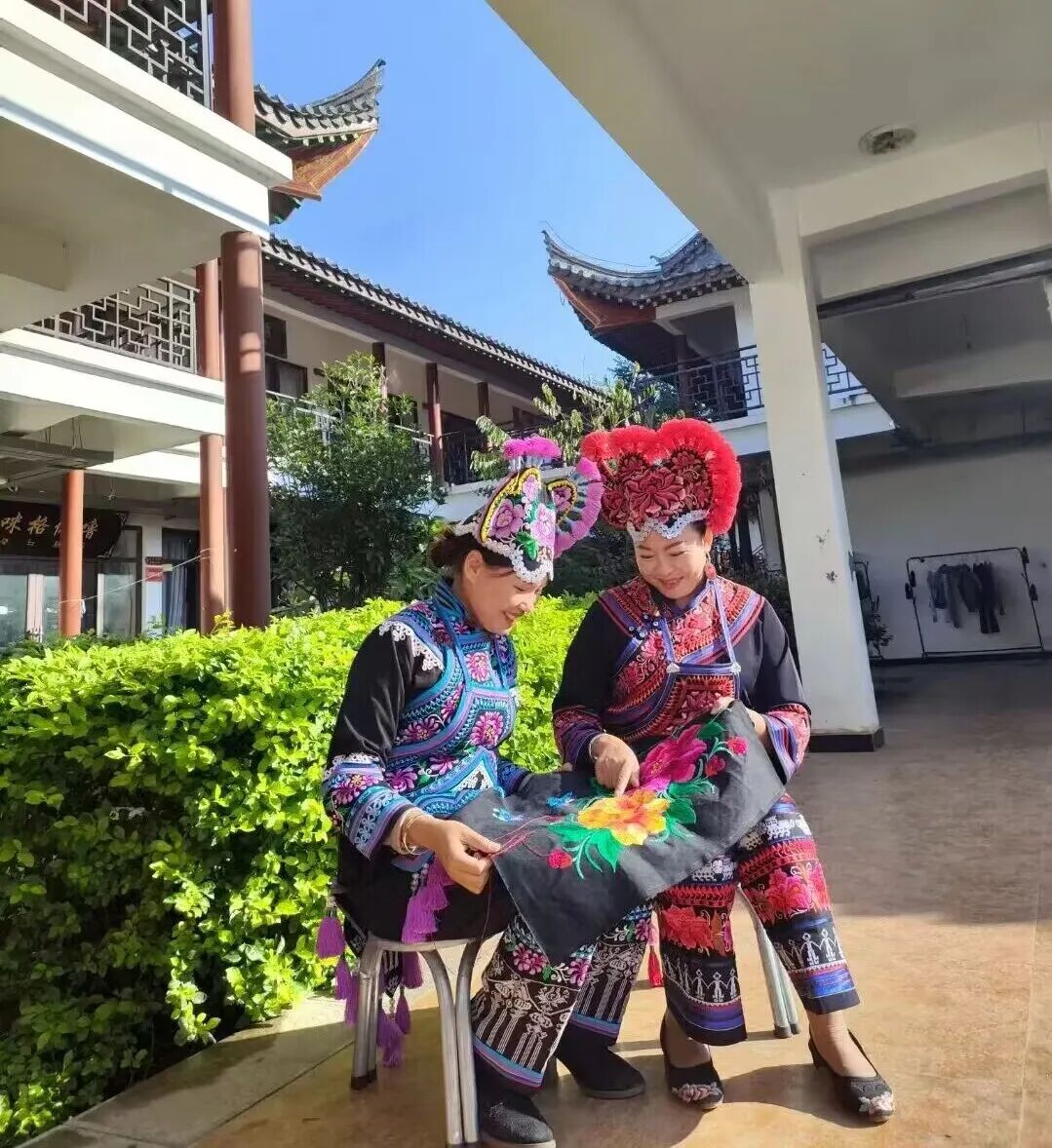 来到楚雄州永仁县莲池乡查利么村委会,走过蓝莓园,穿过草莓地,刚到秧渔河新村口就听到一阵欢快的彝家小调,原来是村里的几个绣娘围坐在一起,一边飞针走线一边自娱自乐。