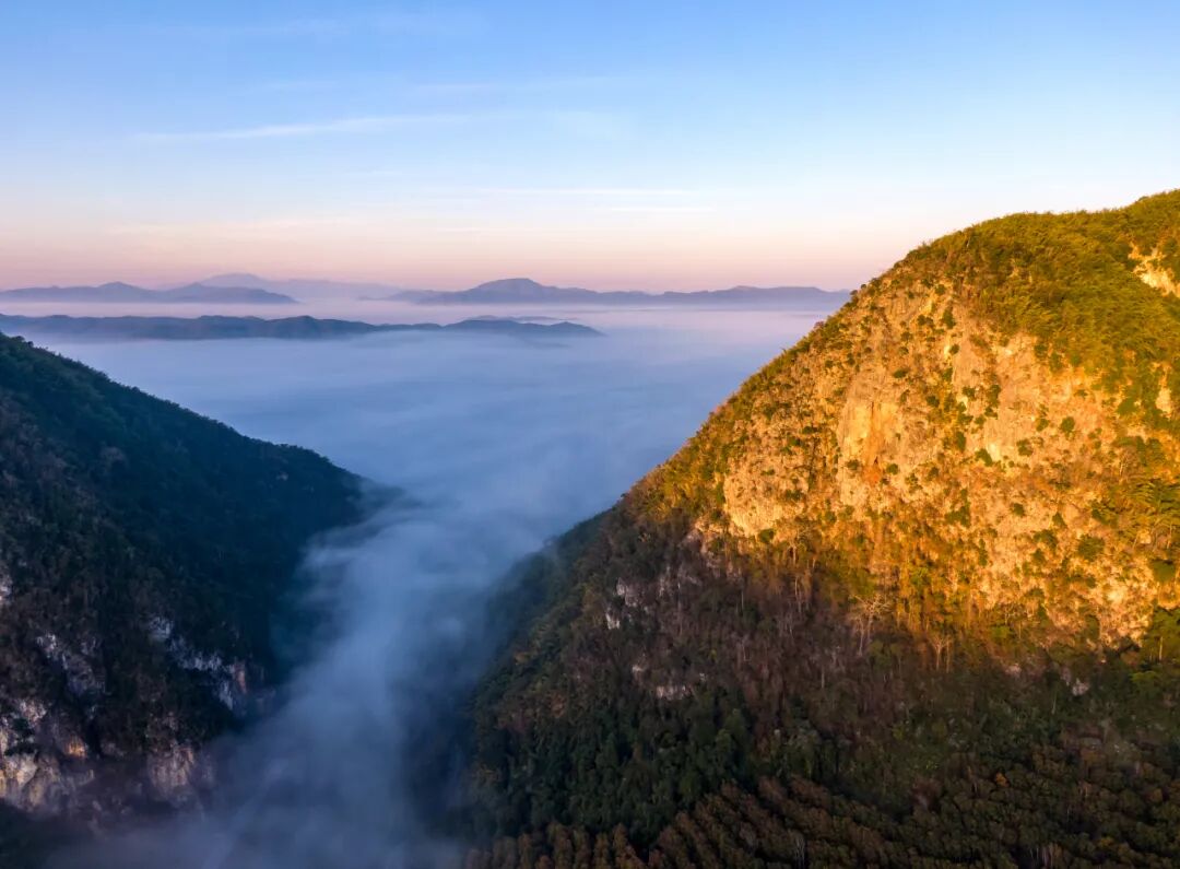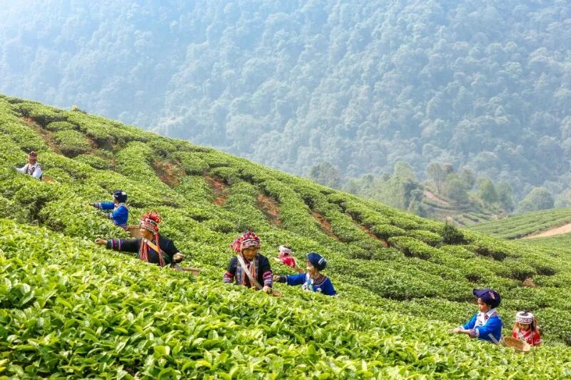 (2)游茶山、观云海:位于攸乐古茶山和易武山茶山的基诺山乡和落水洞,四周高山林立,植物繁茂,在这里不仅能喝上口感醇厚的普洱茶,每当冬日和雨后的清晨还能看到成片雨缭绕山间形成的云海景观。
