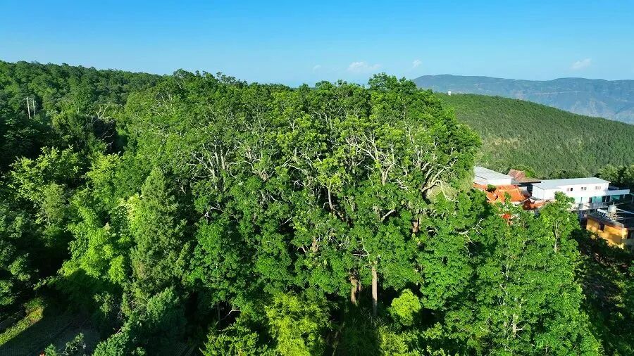 生长在福地胜景静德寺内的滇楸木种植于元、明各代,是云南省高海拔地区最大的一片滇楸林,很好的见证了方山的人文历史。滇楸,紫葳科梓属落叶乔木,树干端直,高可达20余米以上。树叶光滑呈完美心形叶,带着长长的尾尖,春日紫花满树,一到暮春,花叶同发,开花的时候也萌发翠绿色新叶。由于该树种材质优良,用途广泛,是特有的优质用材树种,自古就有“木王”之称。夏日,当你漫步林中,抬头往高空看,“滇楸”树姿雄伟、高大挺拔,枝叶繁茂,完完全全占据高空中第一海拔之位,整片滇楸林掩映在静德寺周围,清幽静谧,景色宜人。