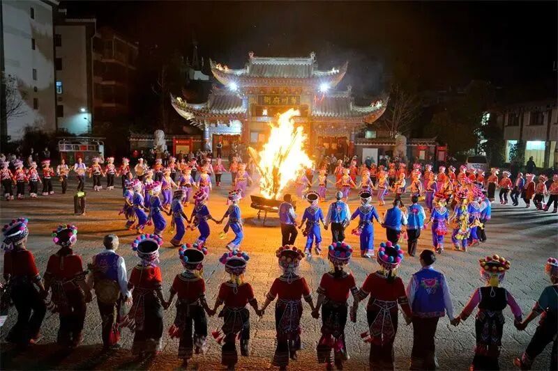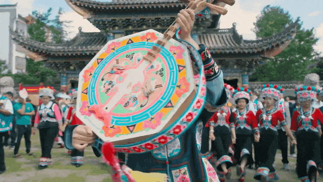 不限人数不限场地的左脚舞,不论何时何地,像集结号一样,只要彝族独有的龙头四弦琴一响,人们就源源不断地来到广场,拉起手,唱起歌,俏皮的口哨声、绣着精美图饰的裤腿飞扬着融为一体,能把在场的所有人都带到火热的节庆氛围里。