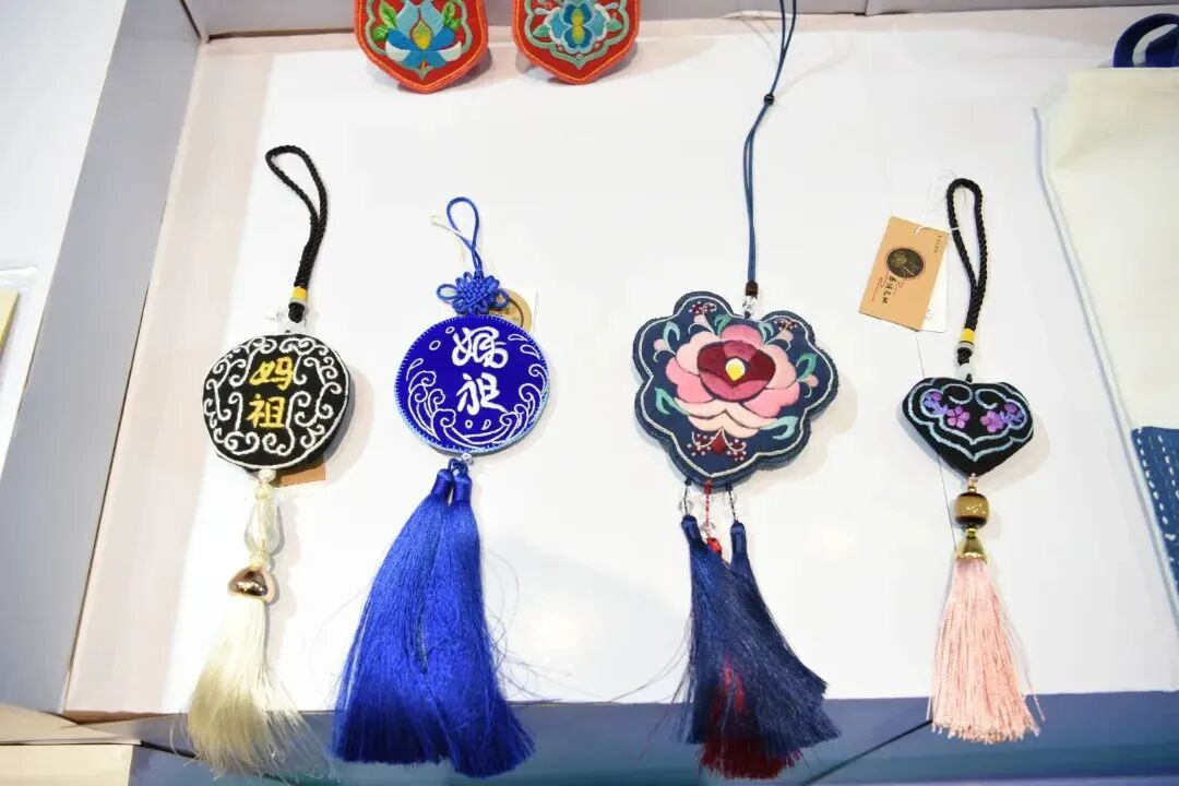 “妈祖文化”—“楚雄彝绣”非遗联名开发的文创产品。杨臻 摄