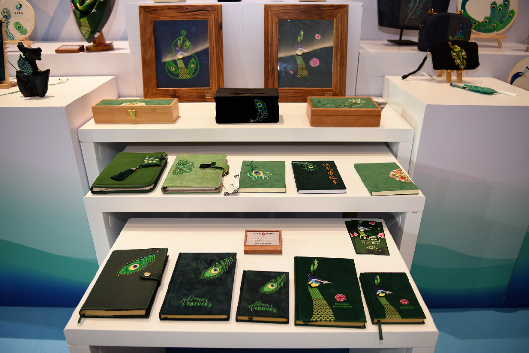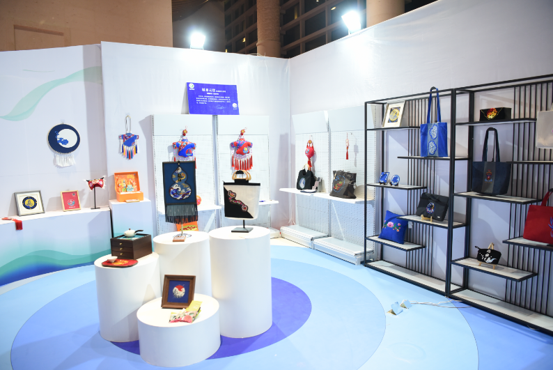 “第七届世界妈祖文化论坛”楚雄彝绣展区展出的彝绣产品。杨臻 摄