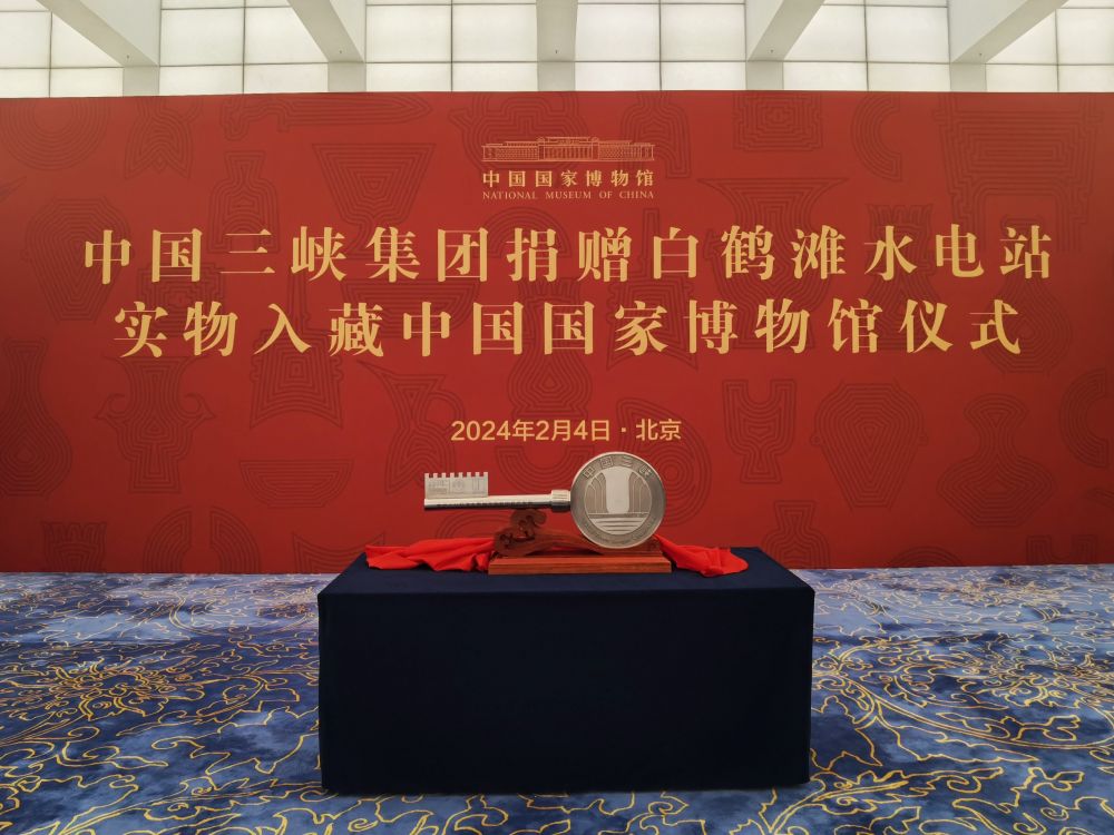 中国国家博物馆近日举行中国三峡集团捐赠白鹤滩水电站实物入藏仪式。记者从仪式上获悉,中国三峡集团决定将白鹤滩江底石切片、首批机组发电仪式入场证以及自主研发的新型低热水泥样品等110件/套实物无偿捐赠给国博。(来源:新华社)