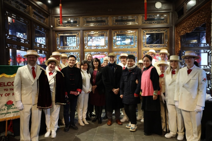 当地时间2月16日,由中外文化交流中心等单位主办的“龙腾四海·欢乐春节”中国新年画美国巡展在美国波特兰市兰苏园开幕。美国有关政府部门和文化机构代表、中美友好人士和市民代表参加活动。据介绍,此次巡展展出约40幅中国年画作品,围绕生肖拜年、吉祥如意、和谐自然、迷人乡韵等主题,向美国民众展现了中国年画艺术传承千年的魅力和当代创新活力。(来源:中国旅游新闻客户端)