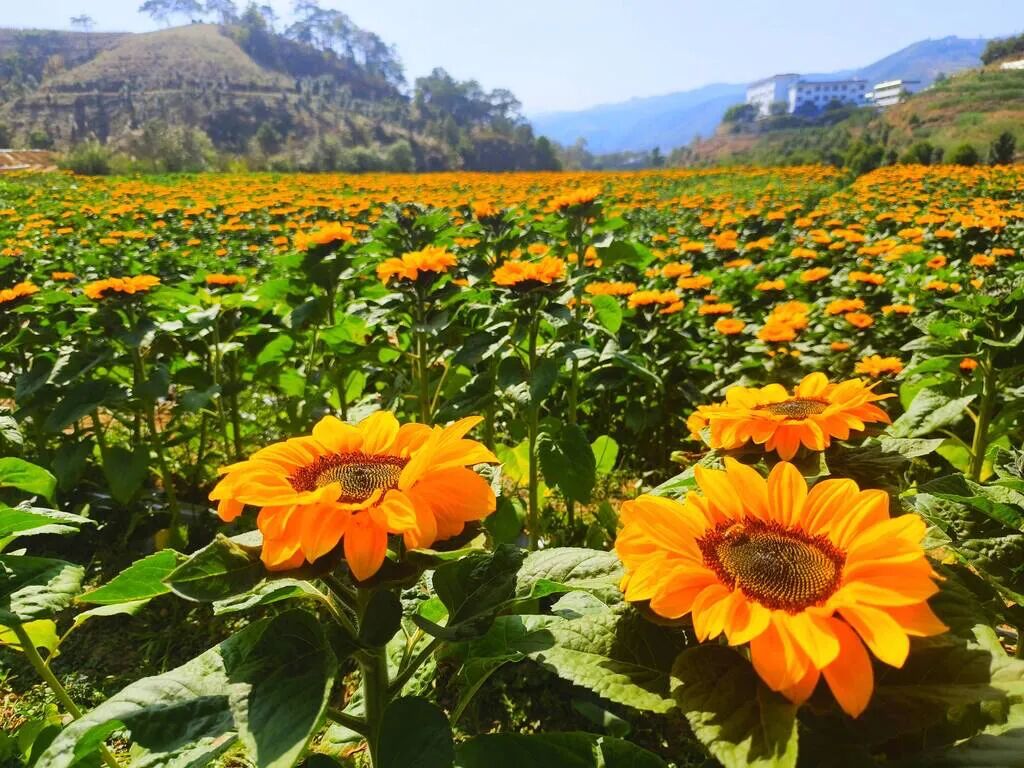 同样是花卉旅游,澜沧江啤酒狂欢节举办期间,云县永胜完小上方的现代农业产业园种植的128亩观赏型向日葵开得热烈。大片向日葵花朵搭配湛蓝的天空,场面让人震撼。每天不间断的游客前往向日葵花海拍照打卡,并进行体验式采摘。同时,因其花幅大、花期长,有很多城市周边市民大量团购置于家中装饰。