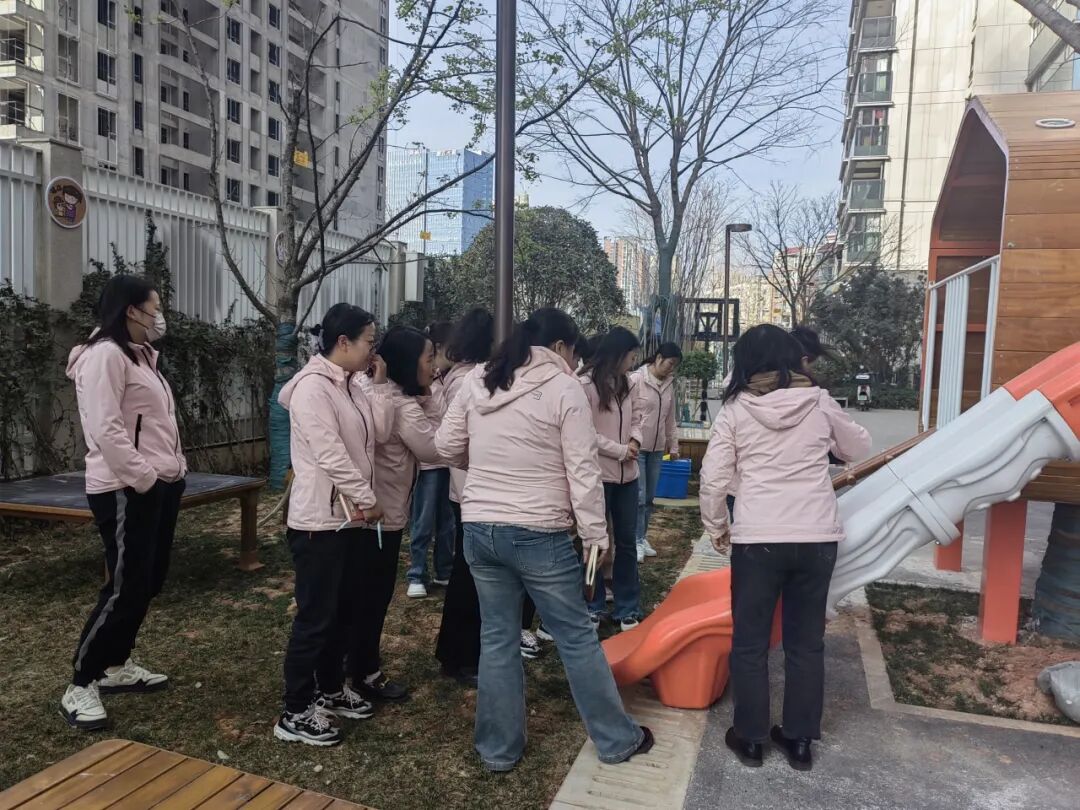 开学在即,为增强教职工的安全防范意识和应对突发事件的处置能力,2024年2月21日上午,西山区前卫幼儿园园长张萍珍、副书记吴蕊、11个班级的班长以及安全员刘一华对全园室内外环境进行了安全隐患排查,确保为幼儿营造一个安全稳定、温馨健康的幼儿园环境。