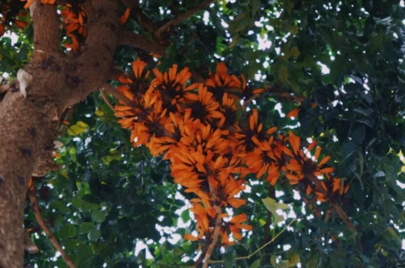 2月至5月,一簇簇、一团团橙黄色至金黄色的火烧花成为道路两旁亮眼风景。火烧花,又名缅木,是先开花,后发叶,一种典型的老茎生花植物。火烧花不仅能带给人视觉上的火热,先苦后甜的滋味,能给舌尖带来一次“苦尽甘来”的经历。
