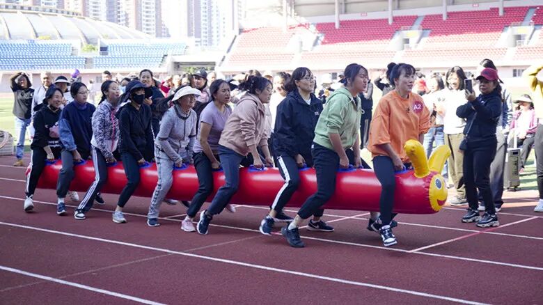活动现场,欢声笑语此起彼伏,气氛热烈而欢快。参与者们在比赛中相互竞技、互相鼓励,展现了团结友爱的精神。拔河比赛、旱地龙舟50米竞速、一圈到底、趣味背夹球等四个体育比赛项目吸引了众多妇女职工积极参与。在拔河比赛中,参赛队员们咬紧牙关,齐心协力,展现出了团结拼搏的精神风貌;旱地龙舟竞速则考验着队员们的协调能力和默契配合,她们在龙舟上奋力向前,争夺着比赛的胜利;一圈到底项目中,参赛者们身手敏捷,配合默契,将圈圈传递得飞快;趣味背夹球更是将现场气氛推向了高潮,大家背着气球奔跑,争夺着目标,场面既紧张又欢乐。
