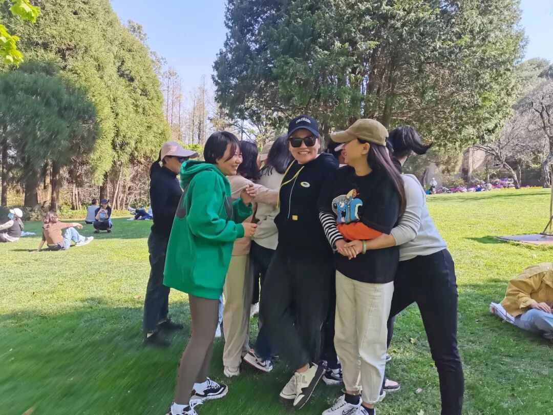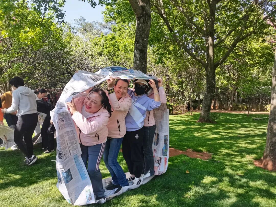 来到玉兰园,教师们玩起了游戏“车轮滚滚”“解锁扣”。平日里只会和小朋友做游戏的老师们自己玩起游戏来也神采飞扬。